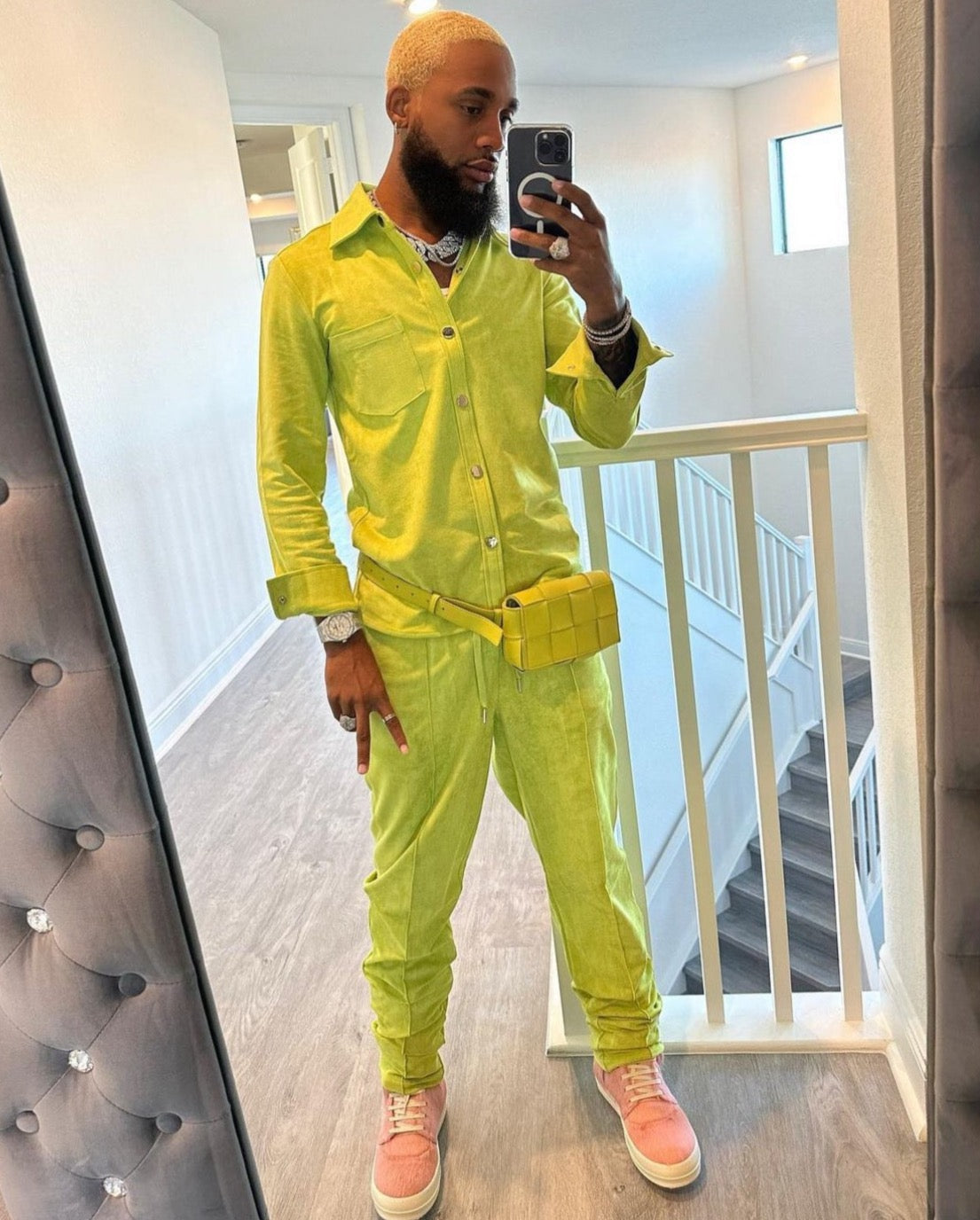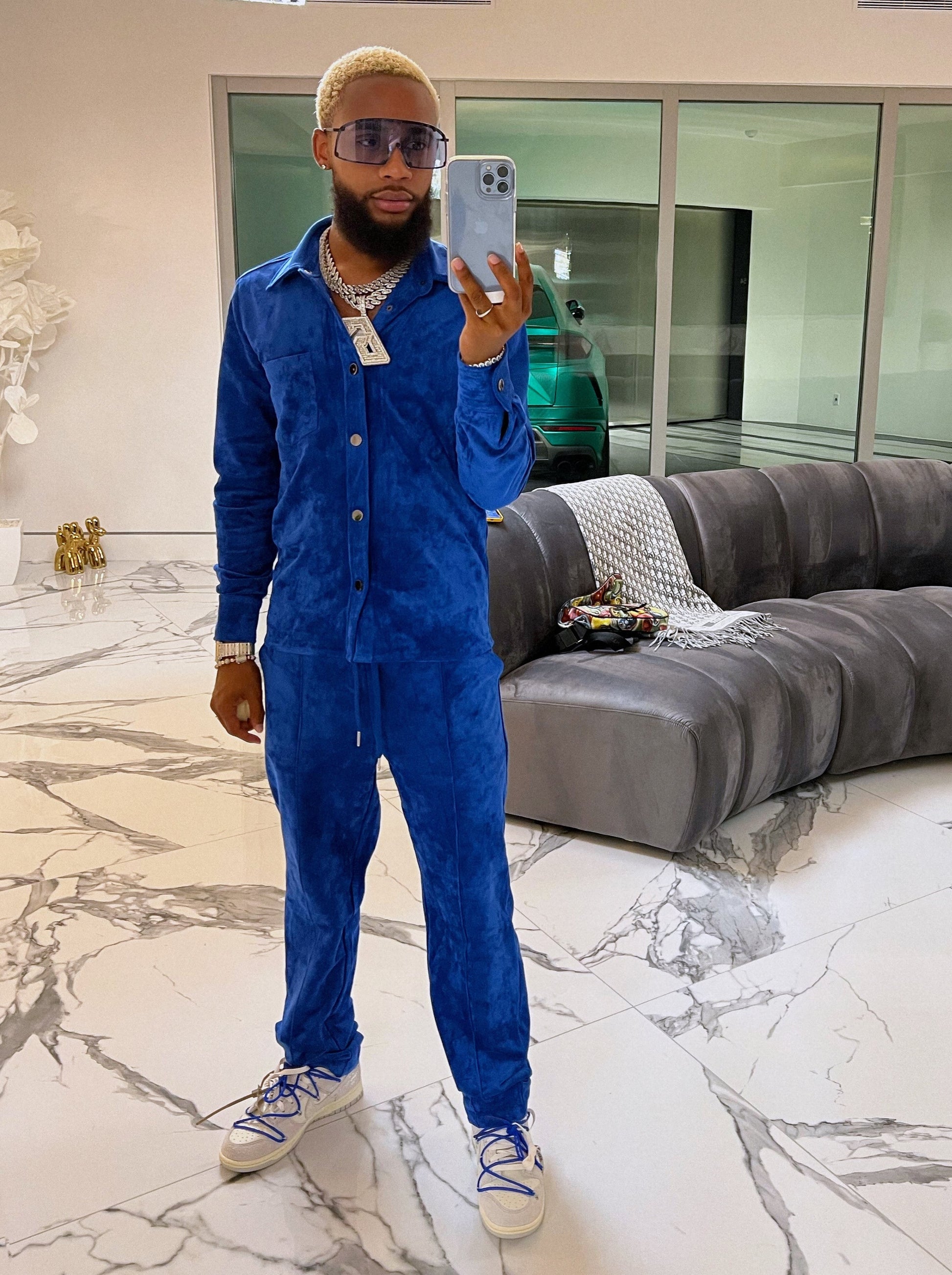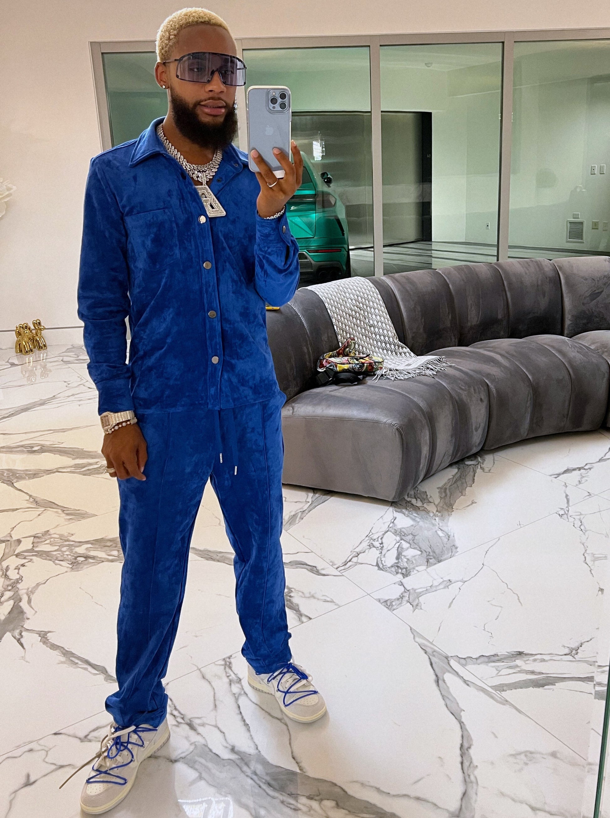 Essence was curated with top quality cow suede and consists of a button up top along with pleated matching trousers. Essence is unisex and can be worn luxuriously on both women and men.