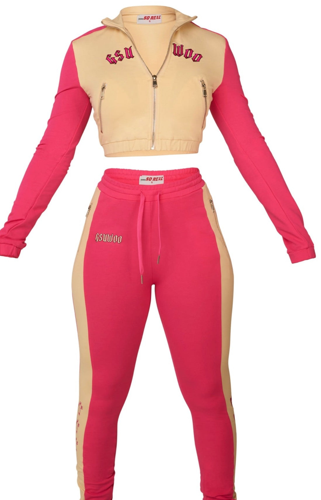 The Potion set was carefully crafted to encompass cuteness, comfort, and style. It consists of a cropped zippered jacket and matching jogging pants. This set fits like a glove and includes a drawstring and elastic ankle band for adjustable length. True to size with a snug and cozy fit, complete with zippered pockets for added convenience.